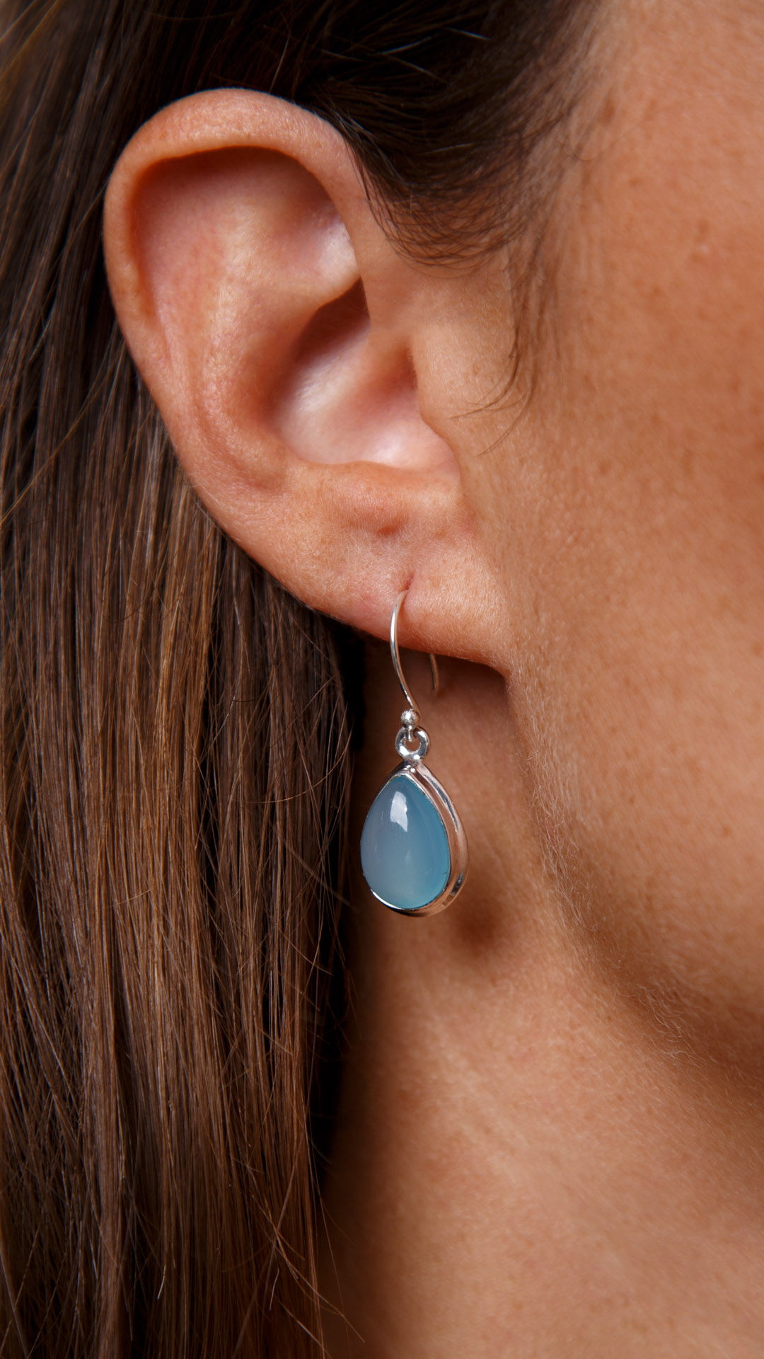 Το απαλό γαλάζιο χρώμα του άκουα χαλκυδόνιου πρωταγωνιστεί σε αυτό το υπέροχο ζευγάρι ασημένιων σκουλαρικιών. Ο άκουα χαλκυδόνιος είναι γνωστός και ως η “πέτρα του ρήτορα” και έχει σαν ιδιότητα να εγείρει την σοφία και τις σωστές σκέψεις. Είναι αρκετά όμοιο με το Idony Aqua Chalcedony Silver Earring αλλά αυτό το ζευγάρι έχει σχήμα σταγόνας και παχύτερο ασημένιο περίγραμμα.