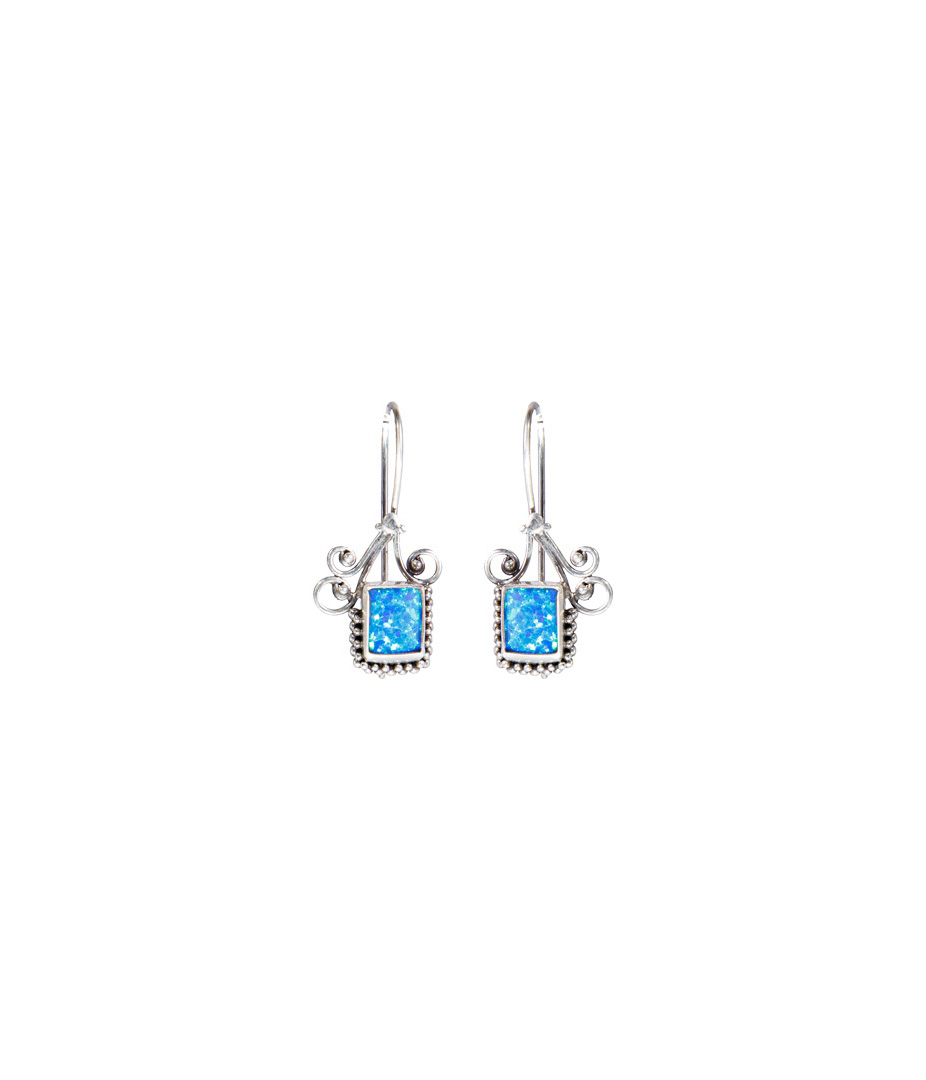 Ο ημιπολύτιμος λίθος Οπάλιο, μια μαγευτική και πολύχρωμη πέτρα είναι το κύριο στοιχείο των σκουλαρικιών “Opal Swirl”. Η κοπή καμπουσόν και το φινίρισμα αυτής της πέτρας μεγιστοποιούν το χρώμα και τα χαρακτηριστικά της, ενώ η χειροποίητη τεχνική κοκκοποίησης που διακοσμεί τα σκουλαρίκια καθώς και το ιδιαίτερο σχέδιο ενός αφαιρετικού άνθους δημιουργούν ένα μοναδικό κόσμημα.