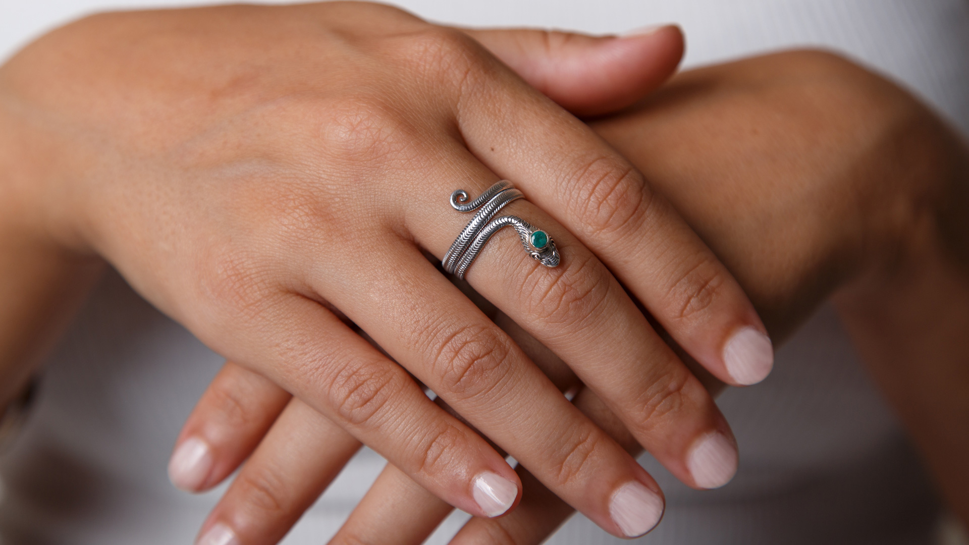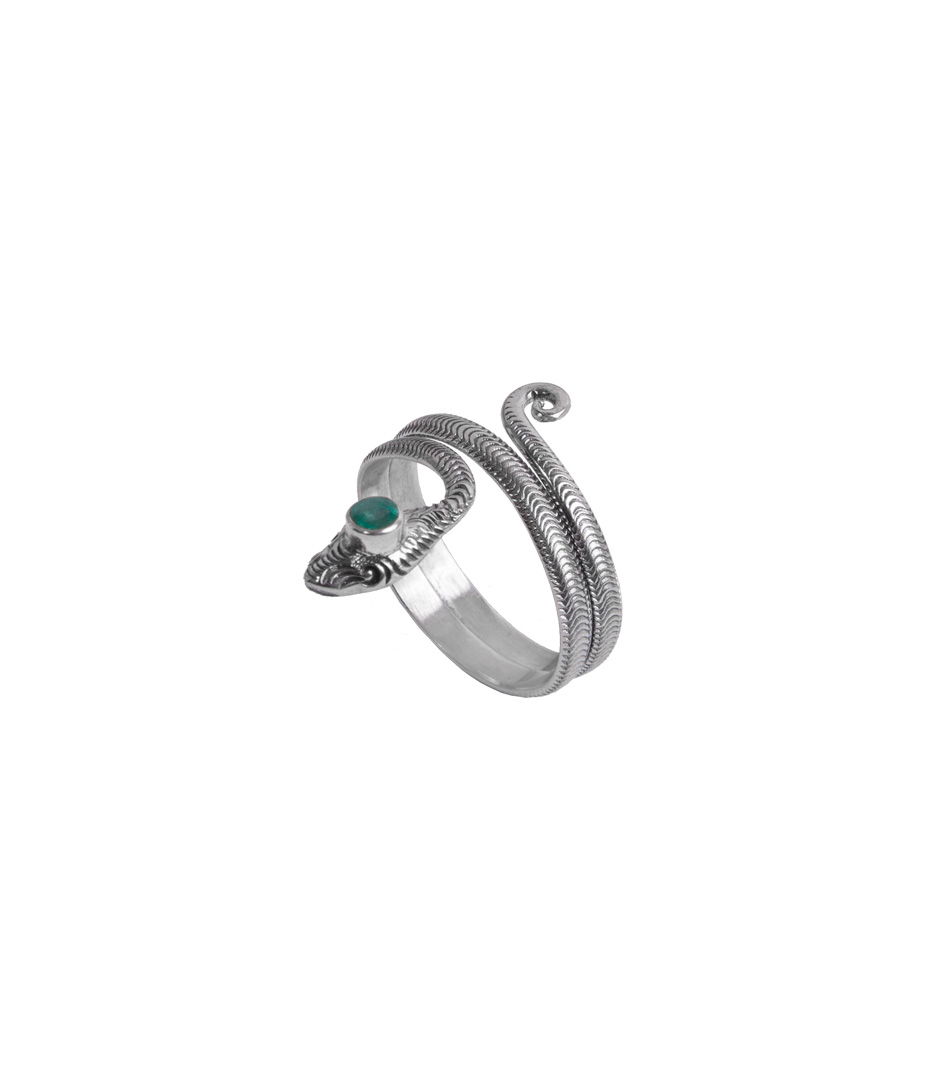 Ένα διαχρονικό κόσμημα, ένα ασημένιο δαχτυλίδι χειροποίητα διακοσμημένο με το πολύτιμο λίθο Σμαράγδι. Το Σμαράγδι πιστεύεται ότι είναι σύμβολο ρομαντισμού, ελπίδας και αναγέννησης. Μια υπέροχη και κομψή επιλογή.