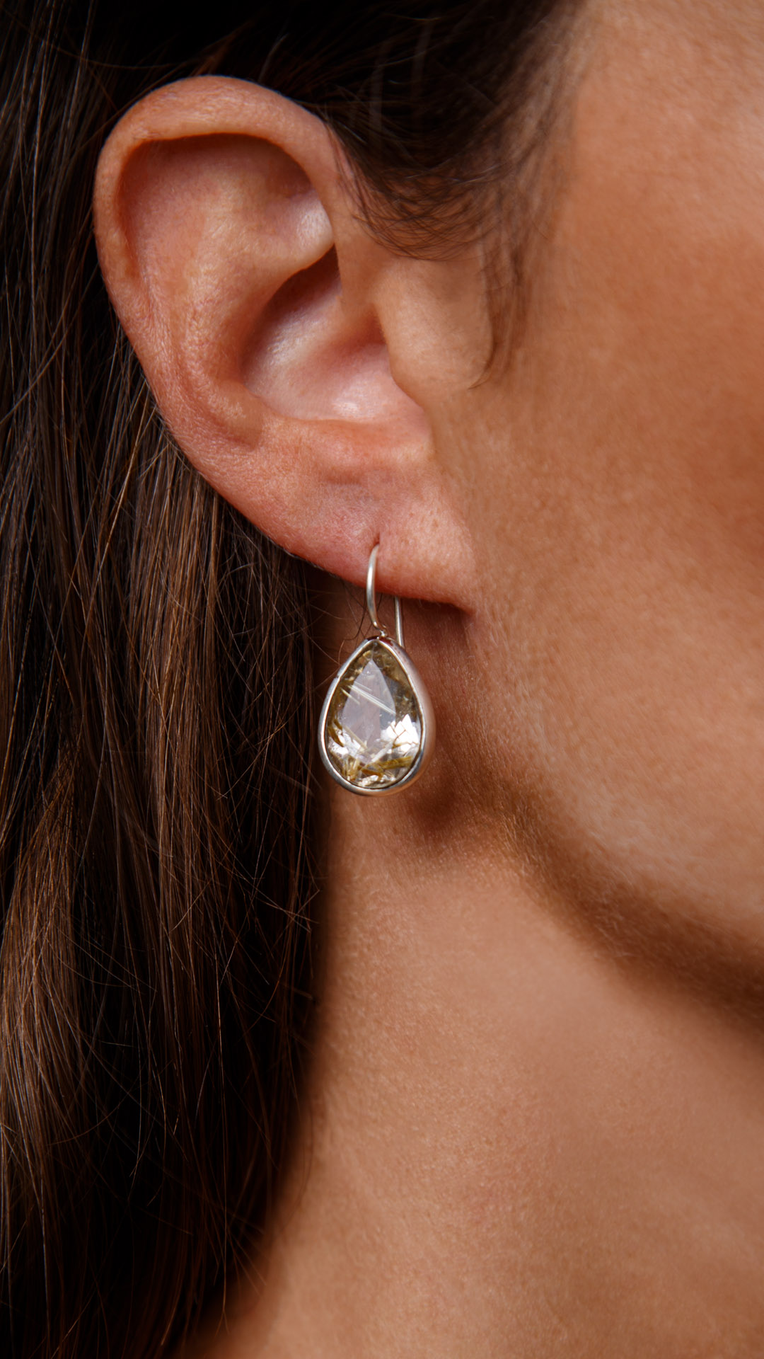 Ο rutilated χαλαζίας διακοσμεί αυτό τα ασημένια σκουλαρίκια. Η χρυσή απόχρωση στο σχεδόν διαφανές φόντο της πέτρας είναι μια εξαιρετική επιλογή για να προσθέσετε μια λάμψη κομψότητας σε κάθε εμφάνιση. Αυτή η πέτρα είναι επίσης γνωστή με την ονομασία “Τα μαλλιά της Αφροδίτης” λόγω της μαγευτικής εμφάνισής της καθώς και των θεραπευτικών της ιδιοτήτων.