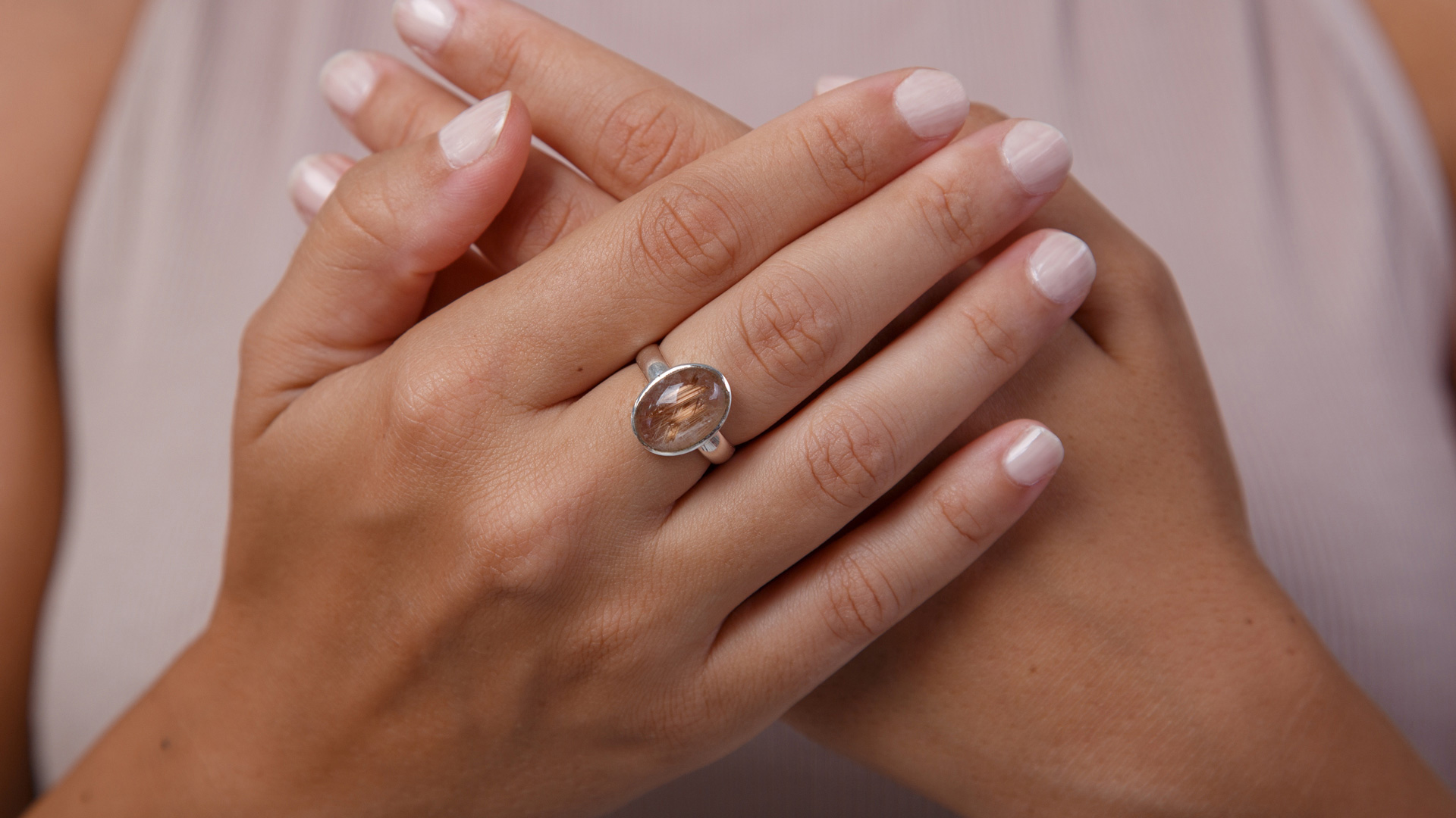 Διάσημη ως η πέτρα της Αφροδίτης, η χρυσή πέτρα χαλαζία είναι το κύριο στοιχείο σε αυτό το δαχτυλίδι από ασήμι 925°. Ο χαλαζίας με μακρούς και λεπτούς κρυστάλλους από ρουτίλιο μοιάζει αγγελικός, καθιστώντας αυτό το δαχτυλίδι τη σωστή επιλογή για τους λάτρεις των κρυστάλλων.