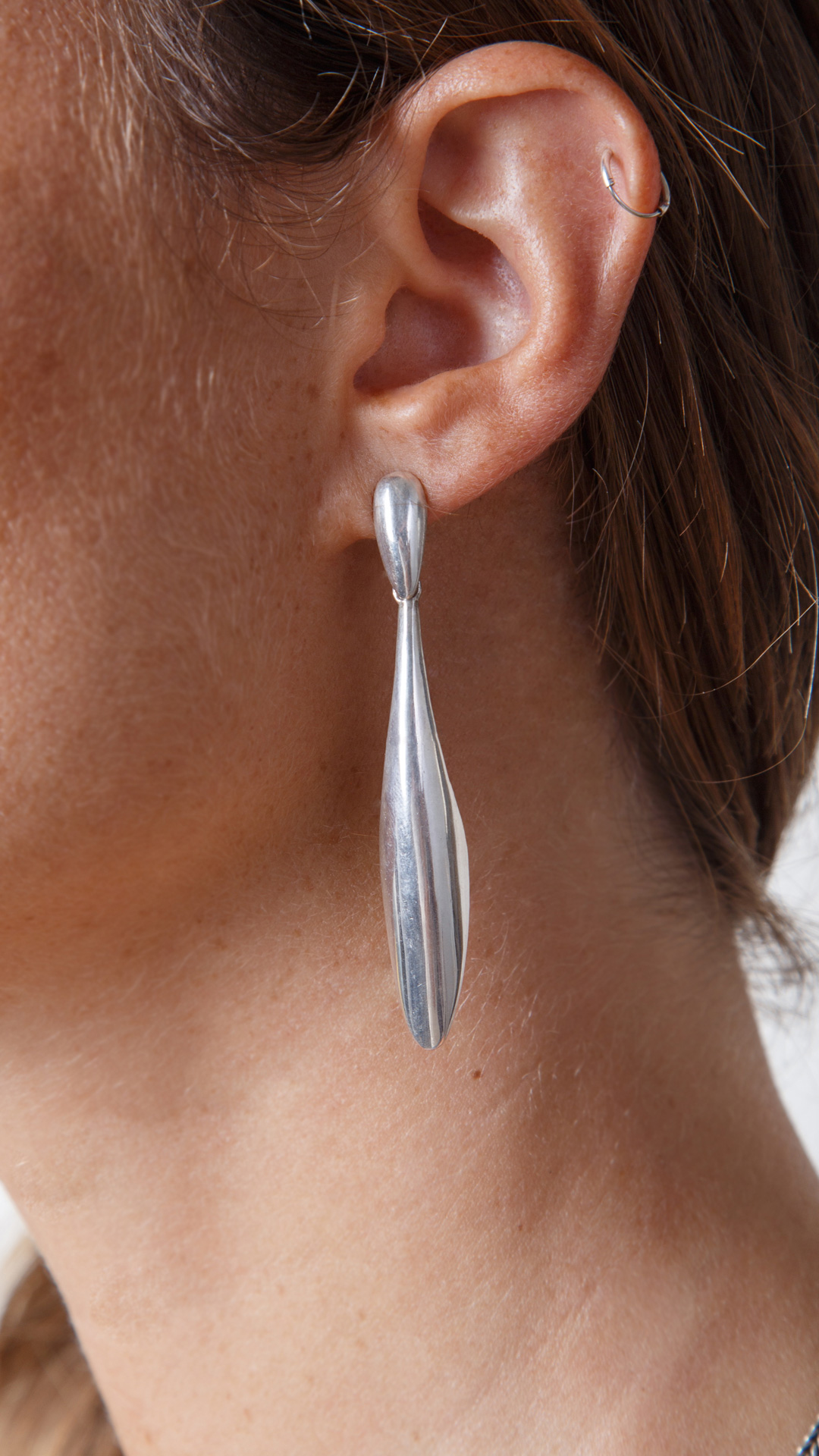Σκουλαρίκια με λαμπερό γραμμικό σχέδιο για να διακοσμήσετε τα αυτιά σας. Αυτό το κόσμημα αποτελείται από δύο μέρη που του χαρίζουν ευέλικτη κίνηση. Μια πολύ μοναδική και κομψή επιλογή για κάθε περίσταση.