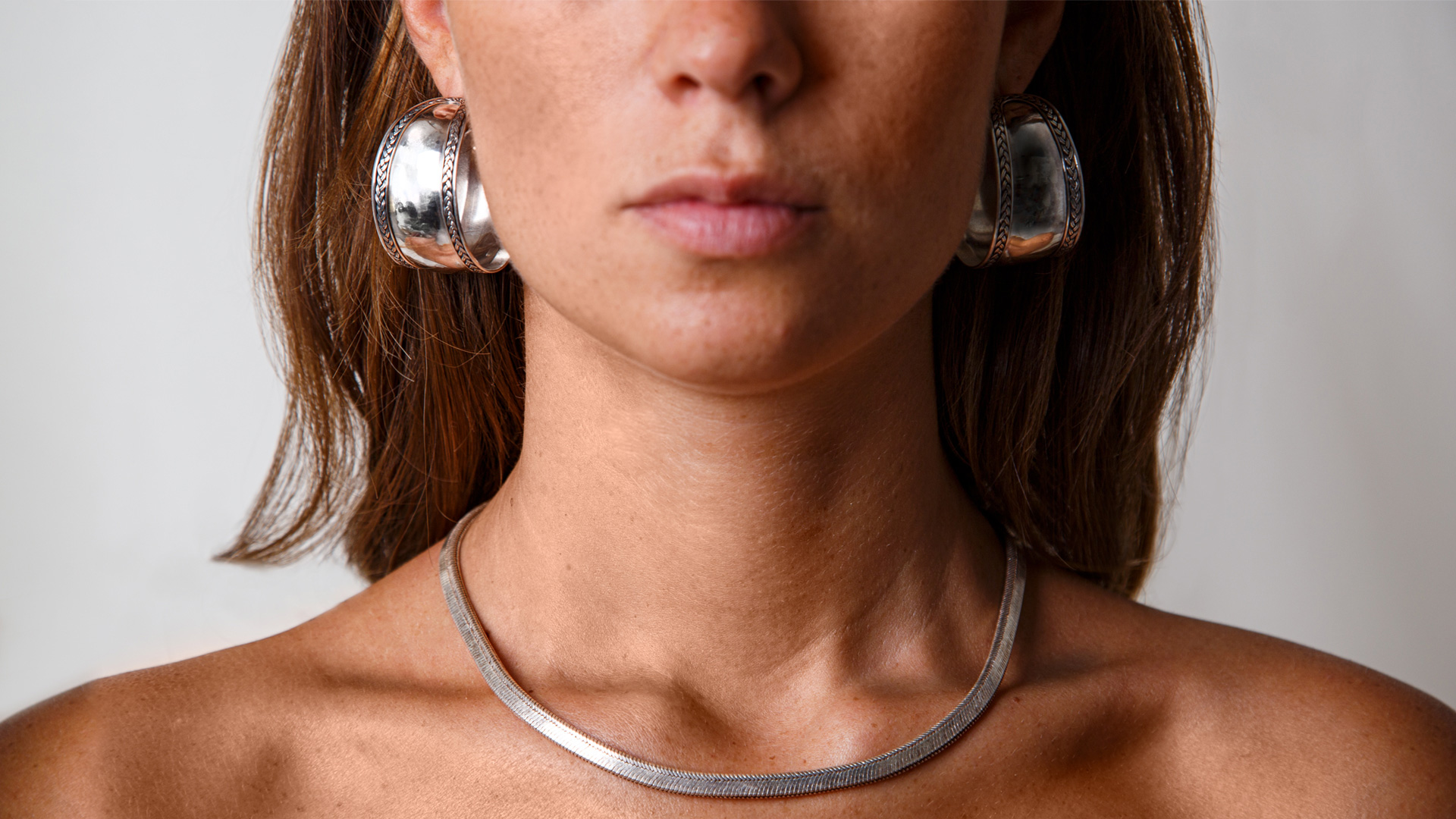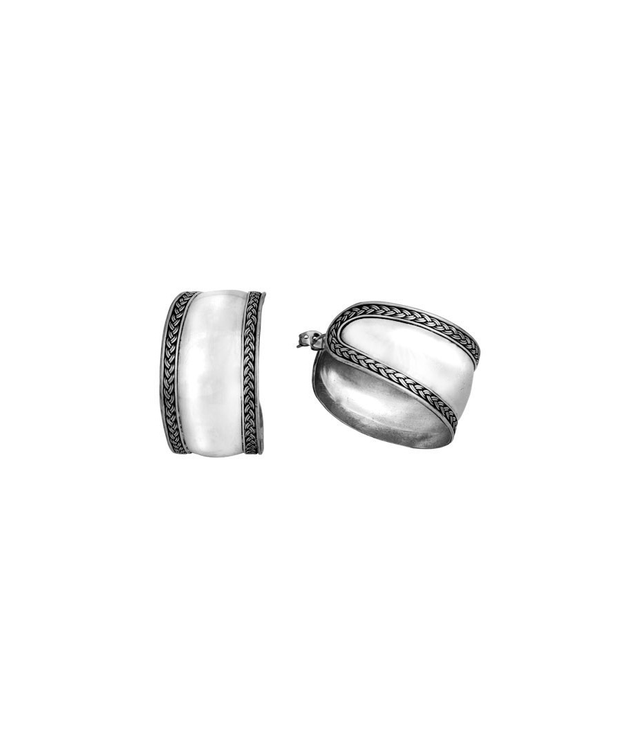 Ένα συναρπαστικό ζευγάρι κρίκων με λεπτομερή διακόσμηση από ασημένια πλέξη. Ένα πολύ λαμπερό και εντυπωσιακό κόσμημα.